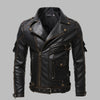 Vyriška juoda odinė motociklinė striukė su kniedėmis ir dirželiais, Goth Punk stiliaus