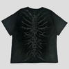 Vyriški juodi marškinėliai su grunge stiliaus stuburo raštu