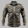 Vyriški marškiniai su metaliniu anatomiciniu skeletu raštu, smėlio ir juodos spalvos