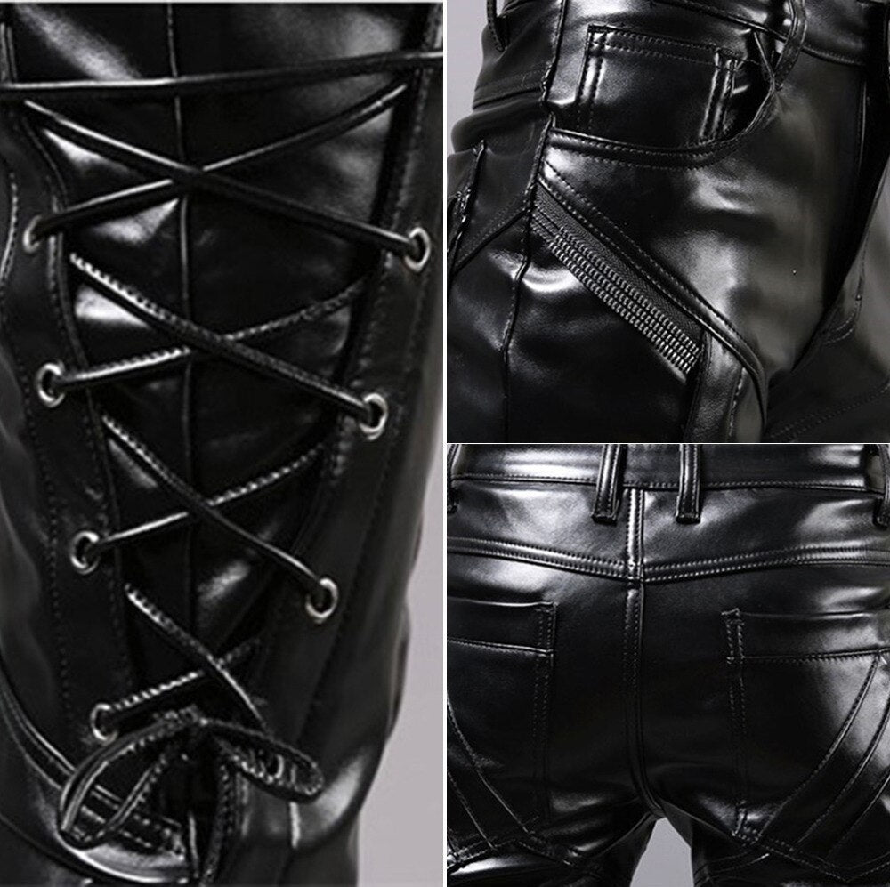 Vyriškos odinės roko metalo kelnės