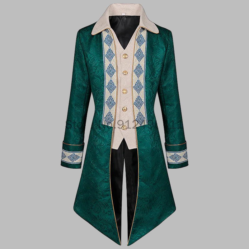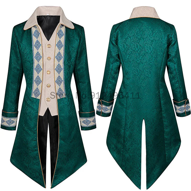 Vyriškas elegantiškas žalias steampunk frakas su ornamentiniais priedais